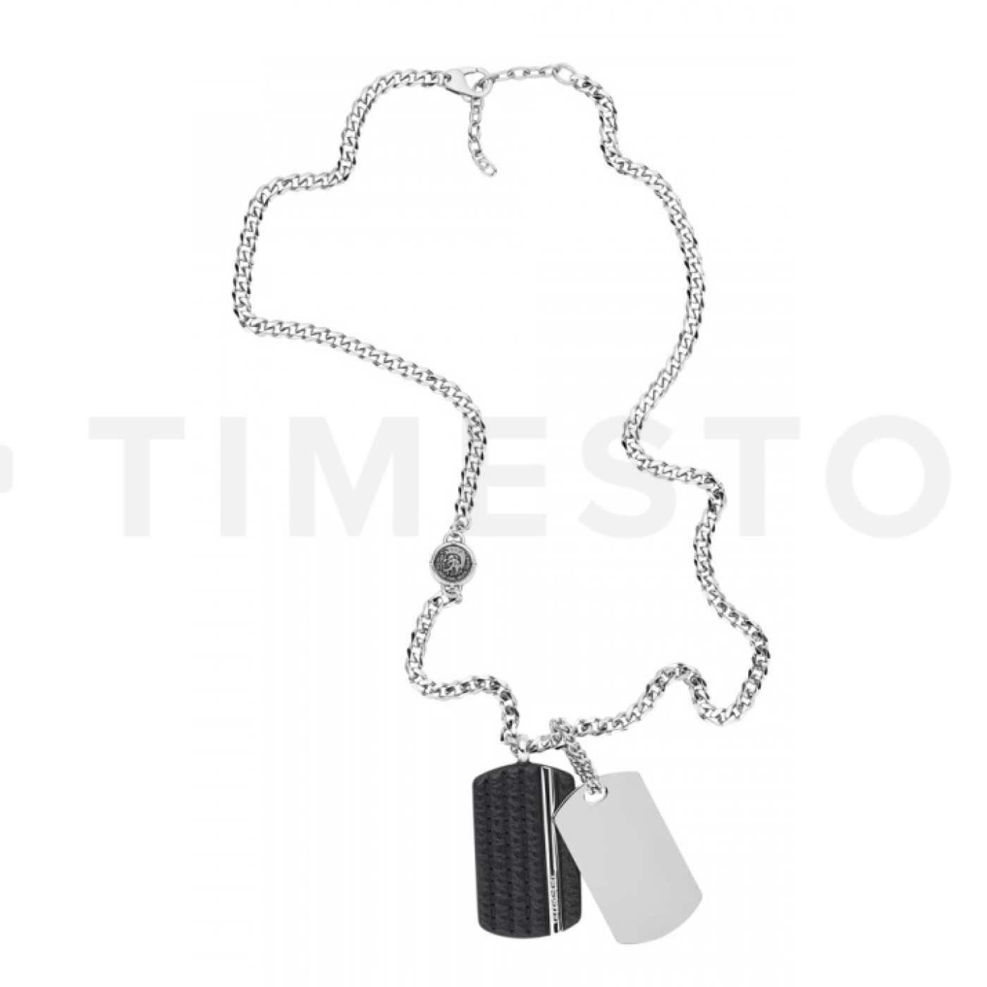 Mirificele coliere au fără îndoială un loc unic în colecția bijuteriilor pentru bărbați și femei. Colierul ales împodobește populara culoare argintie iar materialul principal folosit este din piele naturală. Este fabricat la lungimea de 590 - 640 mm și după cum probabil ați observat, suprafața acestui colier este combinată. Nu mai așteptați cu achiziția, acest minunat colier de la Diesel va deveni preferatul vostru în colecția de accesorii.