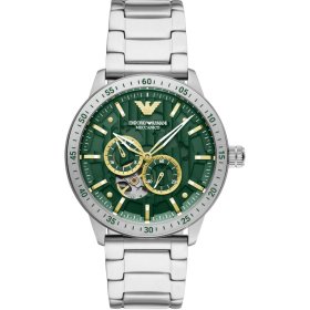 -  Despre brand Emporio ArmaniCeasuri Emporio ArmaniNumele Giorgio Armani este în industria modei un concept imens. Acest designer legendar, pe care îl percep nu doar pasionații de modă, prin piesele sale atemporale s-a ocupat de redefinirea eleganței italiene. În prezent, numele să este gravat pe majoritatea produselor dorite. Cea mai mare atenție o atrag mai ales ceasurile Emporio Armani. Ceasurile Emporio Armani și caracteristica lor de bazăPentru ceasurile Emporio Armani este caracteristic înainte de toate logo-ul vulturului înaripat de pe cadranul ceasului. În plus, însă, trebuie menționate și cronografele, mai ales la ceasurile bărbătești, și invers, cadranele minimaliste ale modelelor de damă. Ceasurile Armani obișnuiesc să fie alimentate de mecanismele quartz Miyota sau Ronda. Indiferent dacă doriți acela japoneze sau preferați cele elvețiene, în ambele cazuri puteți conta pe o fiabilitate excelentă. Și o certitudine este designul unic cu o notă a eleganței italiene. 8 motive de ce sunt ceasurile Armani o alegere ideală?- Sunt elegante, ceea ce subliniază curbele accentuate ale carcaselor, brățărilor și a curelelor.