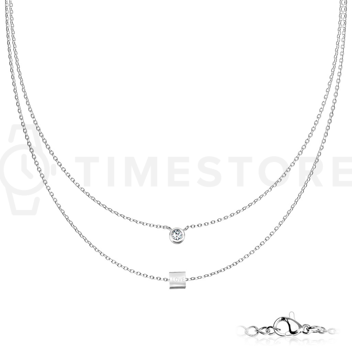 Colier dublu din oțel inoxidabil cu pandantiv rotund și dreptunghiular